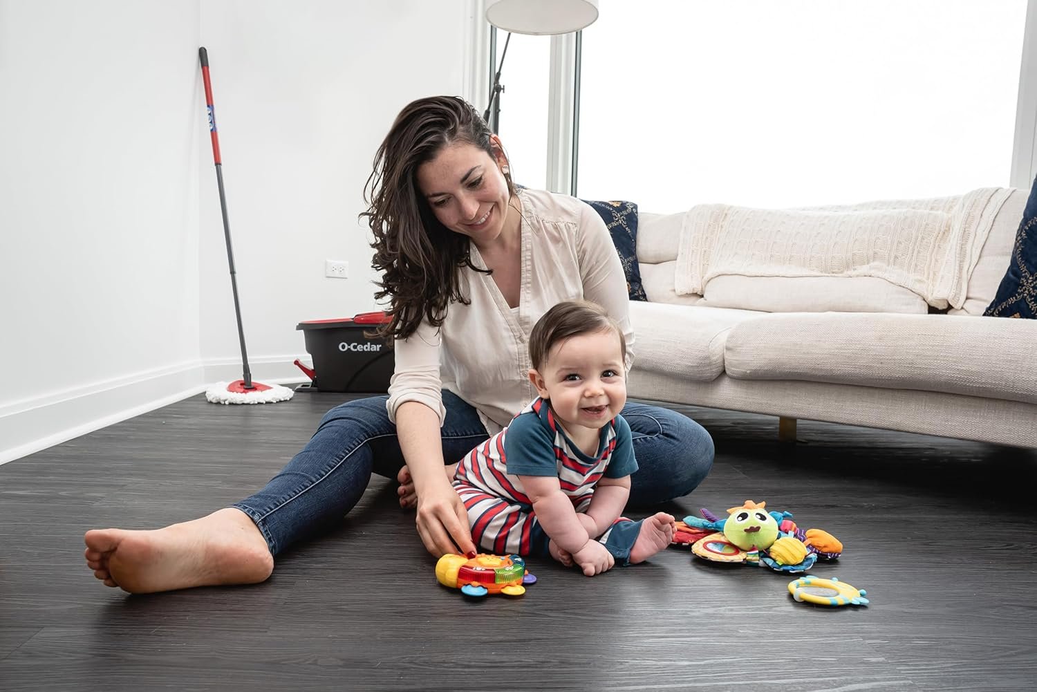 Make cleaning faster and easier with the O-Cedar EasyWring Microfiber Spin Mop & Bucket System. This hands-free floor cleaning solution features a built-in foot pedal for effortless wringing and a splash guard to prevent spills. The deep-cleaning microfiber mop removes over 99% of bacteria using only water—no harsh chemicals needed. Its 360° rotating triangular head easily reaches corners and tight spaces, while the telescopic handle adjusts for comfortable mopping. Perfect for hardwood, tile, laminate, and vinyl floors, the reusable and machine-washable mop head offers long-lasting performance and eco-friendly cleaning.